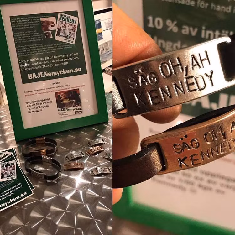 "Säg OH, AH, Kennedy" Tack Bajensmycken för de fina bajenarmbanden och framförallt för att du sponsrar Hammarby Fotbolls Ungdomssektion - vår nästa generations A-lagspelare!
